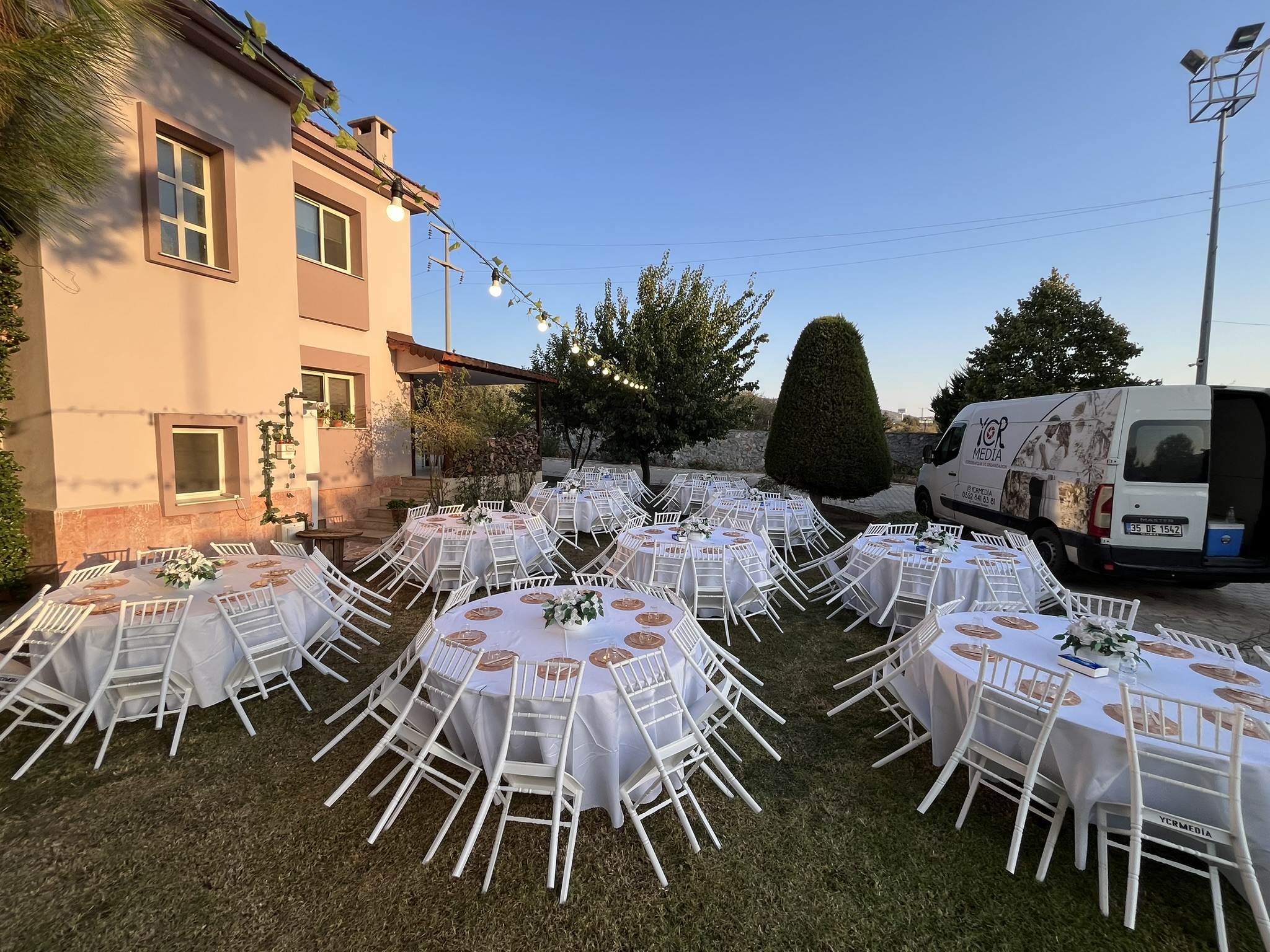 YCR Media olarak Seferihisar, Ürkmez, Menderes, Gümüldür ve Özdere bölgelerinde düğün, nişan, organizasyon ve özel davetler için profesyonel masa ve sandalye kiralama hizmeti sunuyoruz. Farklı konseptlere uygun masa ve sandalye seçeneklerimiz ile organizasyonlarınıza şıklık ve düzen kazandırıyoruz.