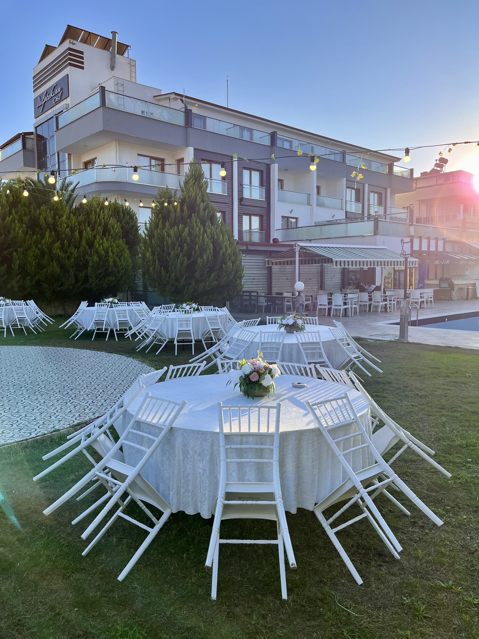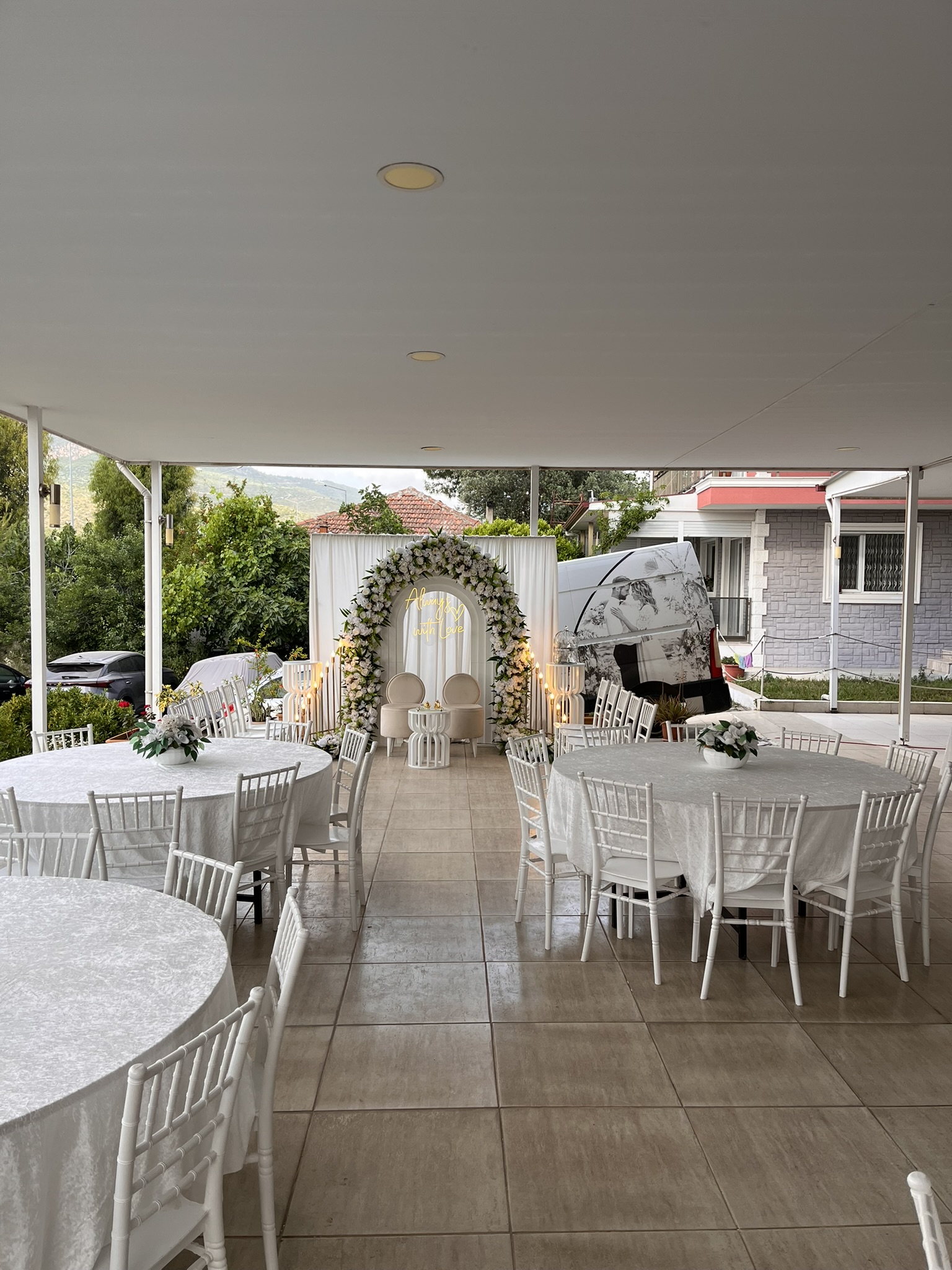 - Çeşitlilik ve Estetik: Klasik tiffany sandalyelerden modern şeffaf sandalyelere, yuvarlak ziyafet masalarından uzun dikdörtgen banket masalarına kadar geniş ürün yelpazesi sunuyoruz. Her konsept için uyumlu masa örtüsü ve sandalye giydirme hizmetleri de mevcuttur.